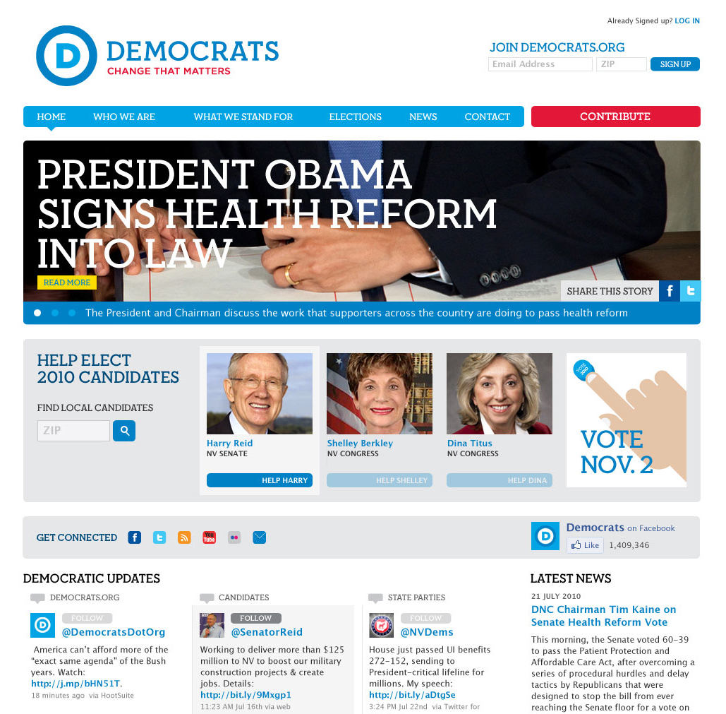 From 2007 through 2010, I was the Lead Designer for the Democratic National Committee. As the organization's senior designer my responsibilities were to design and oversee the production of all print and web projects. During this time I have had the opportunity to work through many elections, several legislative advocacy campaigns and daily online organizing initiatives as part of the organization New Media team. I have experience designing for social networking, designing tools for online organizing and testing and implementing design changes based on analytical measurements.